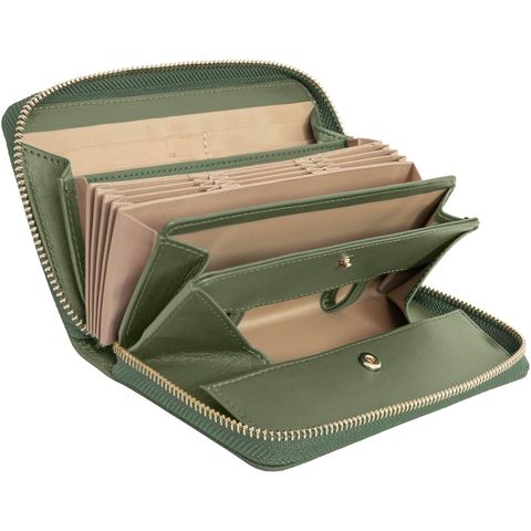 RafiCaro 小さいじゃばら長財布 レディース 本革 カード収納15枚 小銭とレシートを自動仕分け YKKファスナー 通帳も入る 大容量 olive/オリーブ