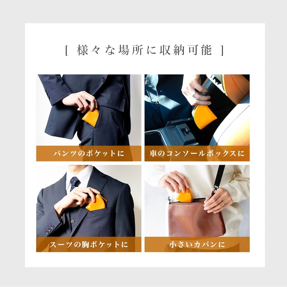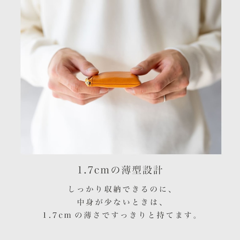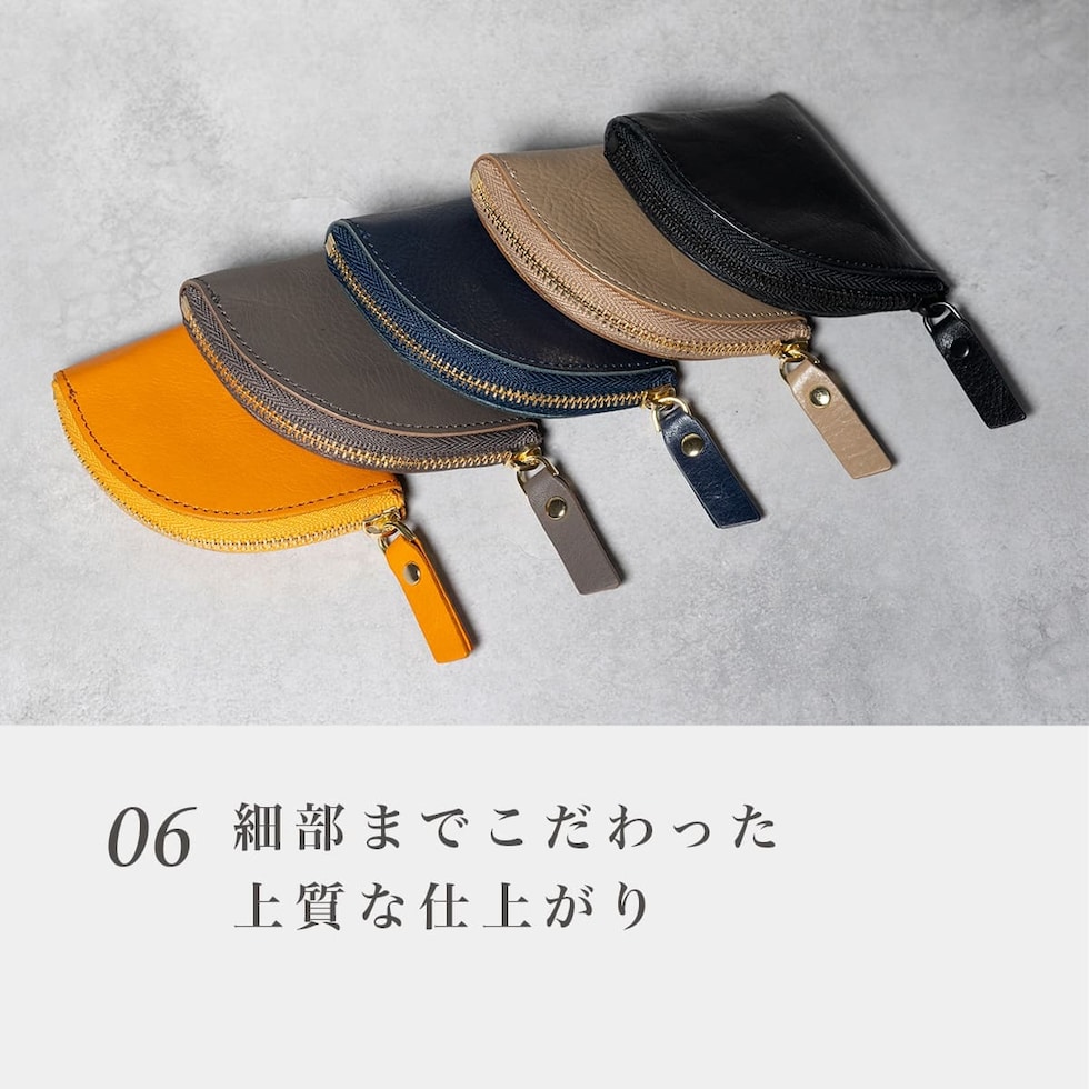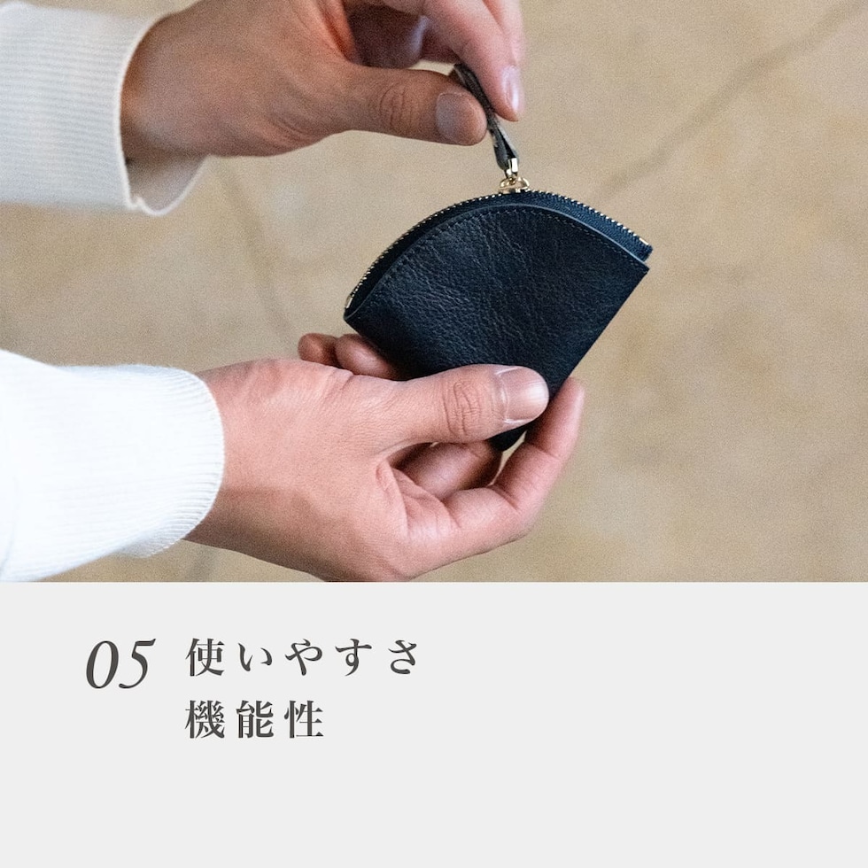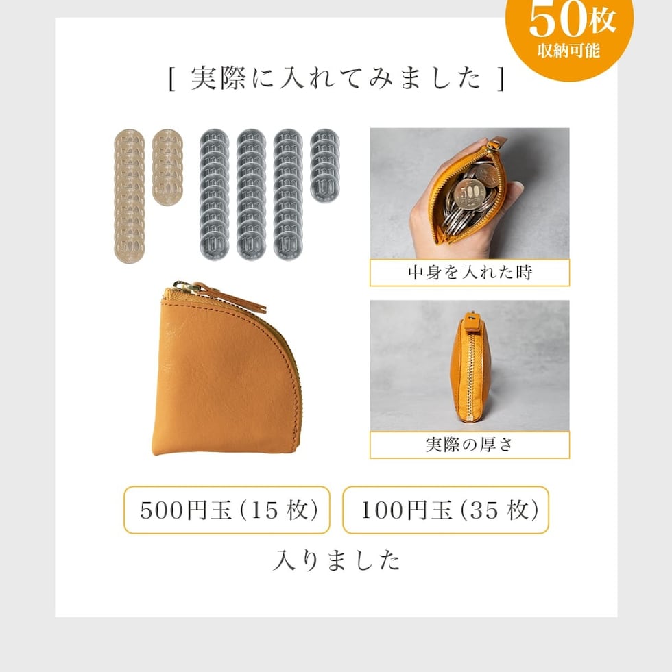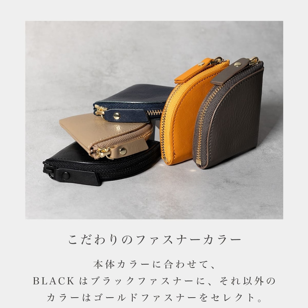 手のひらサイズで気兼ねなく持ち歩きできるコインケースです。小銭なら50枚入る大容量。扇型デザインとL字ファスナーで大きく開き、出し入れもスムーズ。ガジェットポーチやピルケースとしてもお使いいただけます。