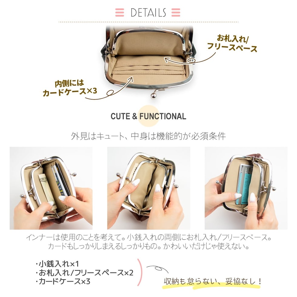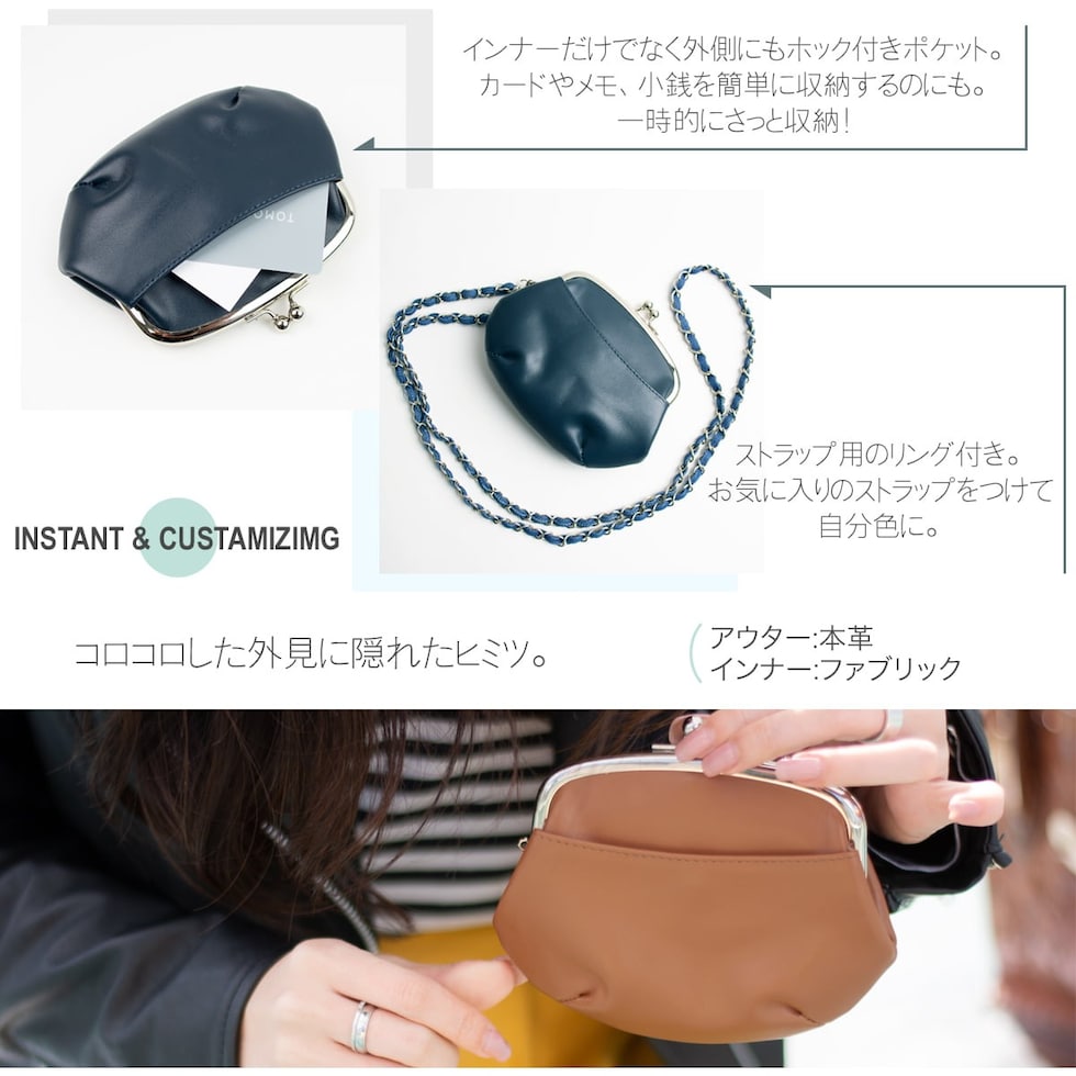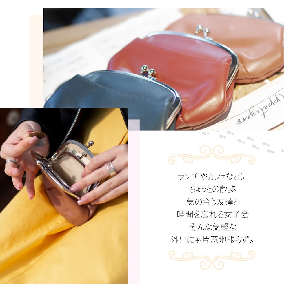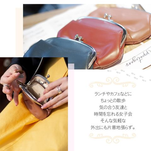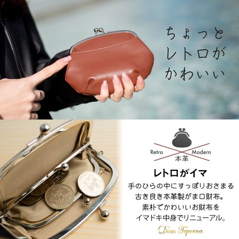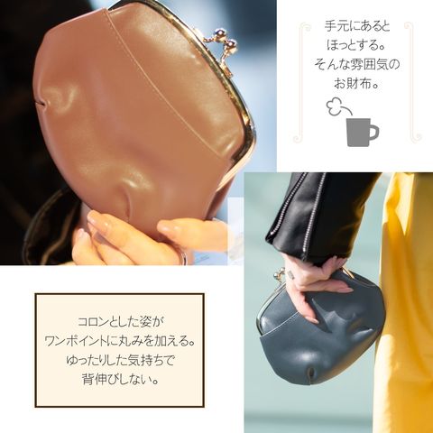 RafiCaro レトロな本革がま口財布 仕分けができる小銭入れとカード収納付き navy/ネイビー