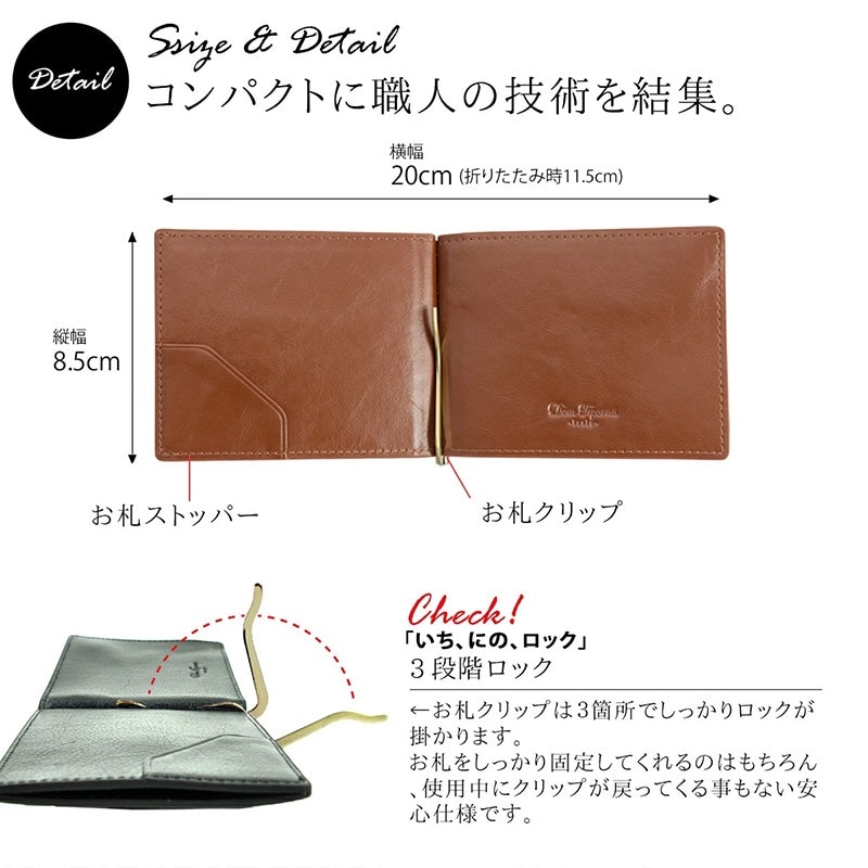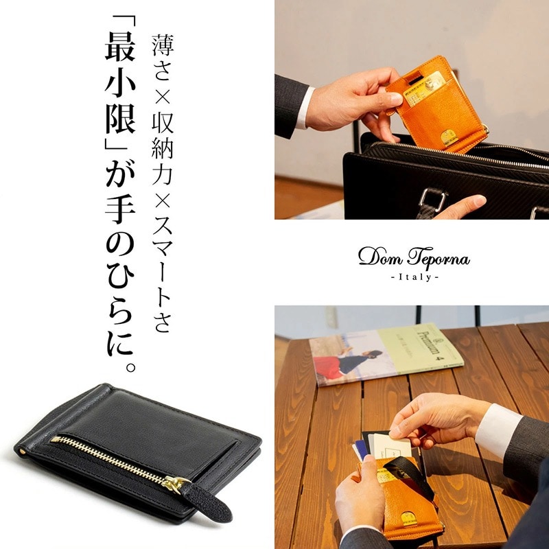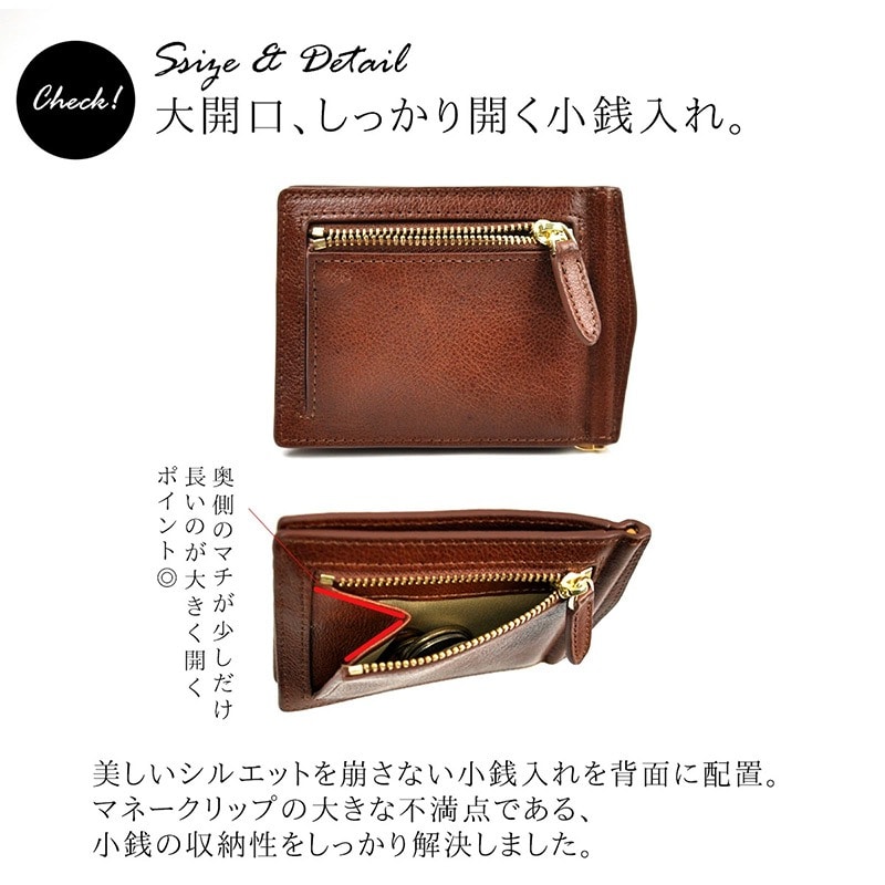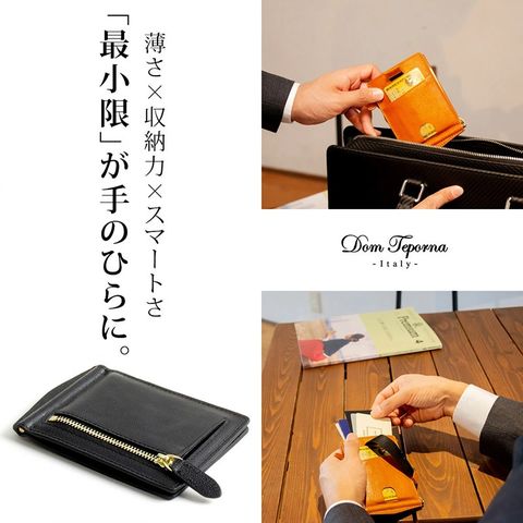 Dom Teporna Italy カードが出しやすい本革マネークリップ 小銭入れ付き darkbrown/ダークブラウン