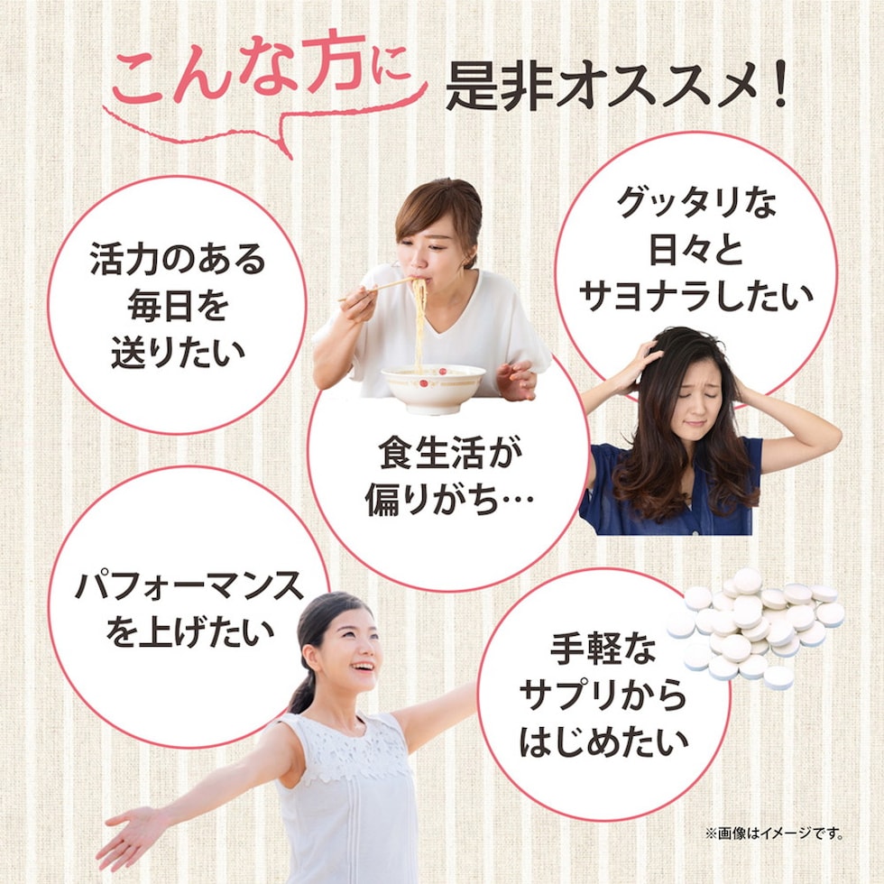 栄養補助食品として1日2粒を目安に、水またはぬるま湯などでお召し上がりください。