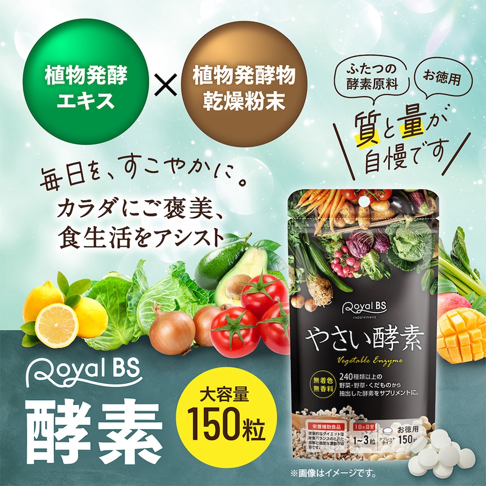 酵素 お徳用 150粒 やさい酵素 野菜酵素 野菜サプリメント 食物繊維 食生活 エンザイム サプリメント 大容量 お徳用 健康 美容 RoyalBS 日本製