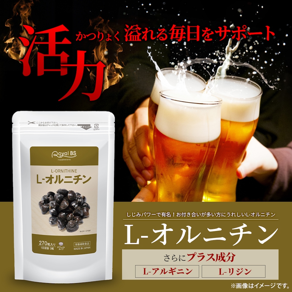 L-オルニチン 270粒 送料無料 大容量 Royal BS サプリ サプリメント オルニチン しじみ サプリ アルギニン リジン lオルニチン シジミ 飲み会 必須アミノ酸