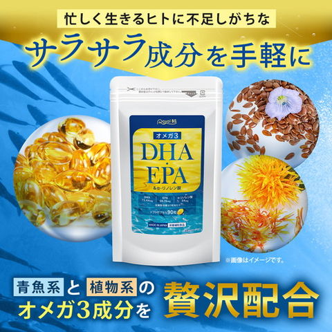 オメガ3 DHA・EPA & α-リノレン酸 90カプセル 約3ヶ月分 送料無料 大容量 Royal BS サプリ サプリメント αリノレン酸 omega3 オメガ3脂肪酸 dhaサプリ epa 必須脂肪酸 健康 日本製