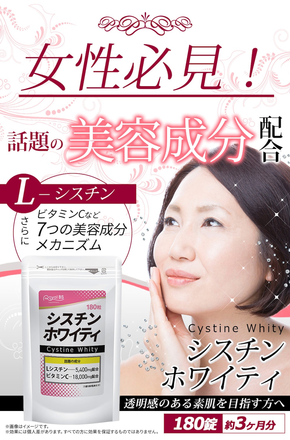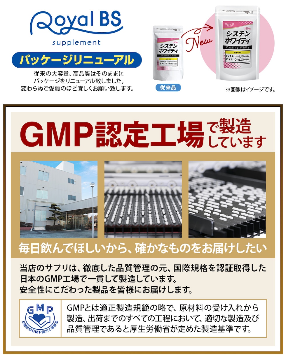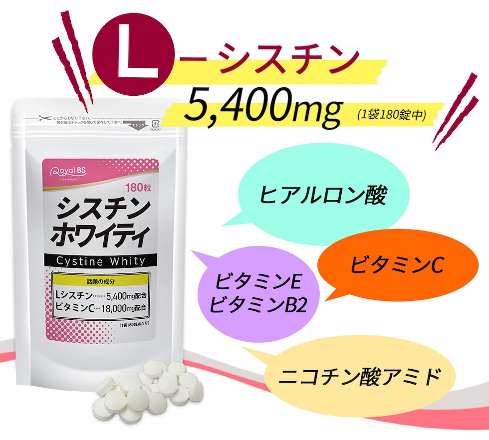 シスチンホワイティ 180錠 送料無料 大容量 Royal BS サプリ サプリメント シスチン lシステイン 年齢 女性 美容 肌 潤い システイン ビタミンc