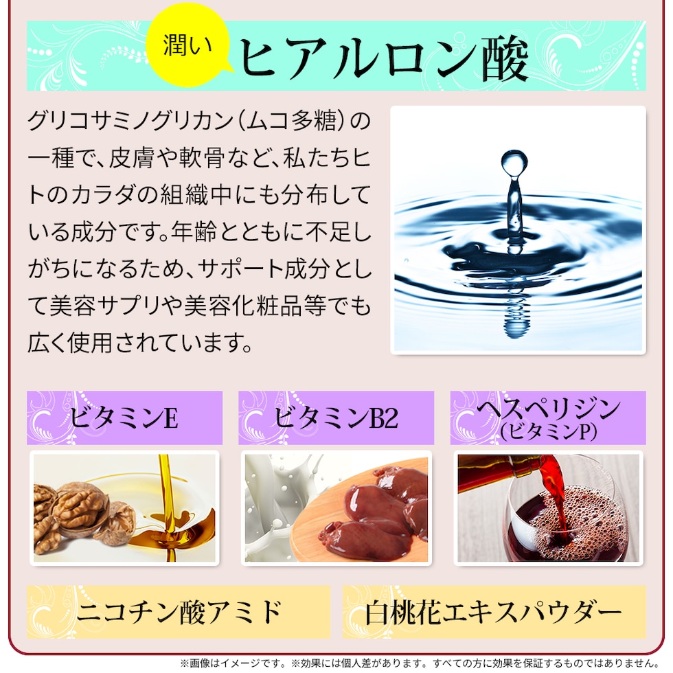 白桃花エキス末(乾燥桃の花、デキストリン)(ももを含む)(国内製造)/セルロース、ビタミンC、L-シスチン、ナイアシン、微粒酸化ケイ素、ステアリン酸カルシウム、ヘスペリジン、甘味料(アスパルテーム・L-フェニルアラニン化合物)、ビタミンB2、ヒアルロン酸、ビタミンE、ベタイン