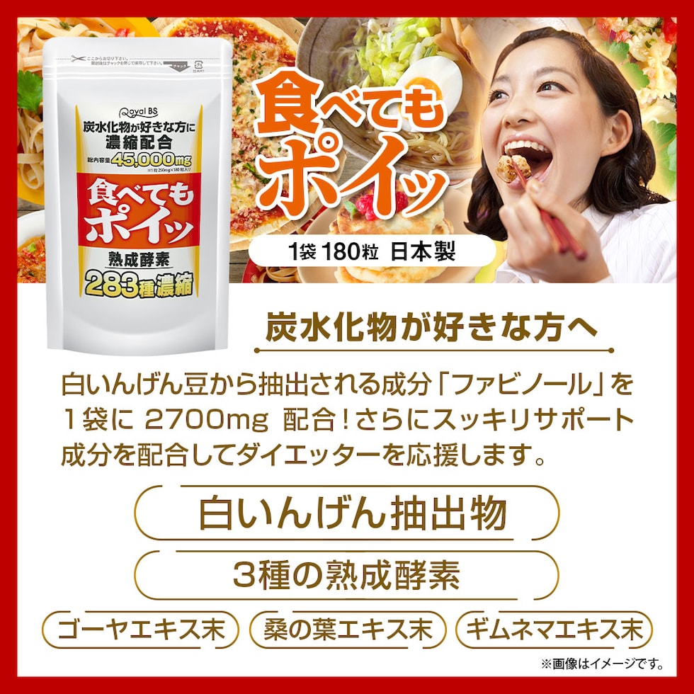 白インゲン豆抽出物(白インゲン豆抽出物、デキストリン)(インド製造)、ニガウリ末、桑の葉末、ギムネマシルベスタ抽出物(ギムルマシルベスタ抽出物、デキストリン)、植物醗酵エキス末(デキストリン、植物醗酵エキス(オリゴ糖、糖蜜、てんさい糖、ヨモギ、その他)(やまいも・りんごを含む))、植物発酵乾燥末(デキストリン、植物発酵乾燥粉末)(オレンジ・キウイフルーツ・大豆・バナナ・りんご・ゴマ・カシューナッツを含む)、植物発酵エキス末(デキストリン、糖蜜、黒砂糖、ヨモギ、ウコン、その他)(りんごを含む)/セルロース、ショ糖脂肪酸エステル、微粒酸化ケイ素