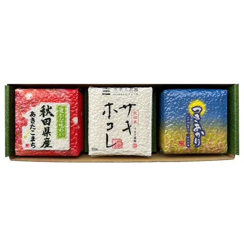 あきたこまち サキホコレ つきあかり 精米 各2合(300g)キューブ3個セット 秋田県産 令和7年産