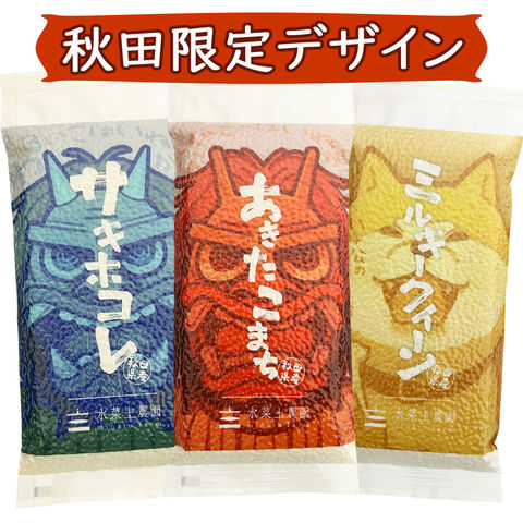 【秋田限定デザイン】新米 あきたこまち サキホコレ ミルキークイーン 精米 各2合(300g)3袋セット 令和7年産
