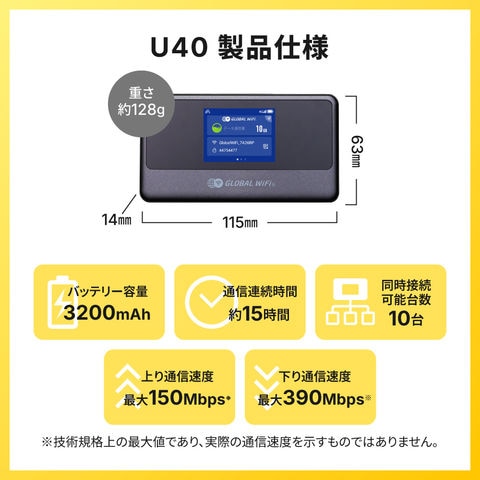 【チャージWiFi】10GB チャージ済み 買い切り型 ポケットWiFi U40 モバイルルーター wi-fi プリペイド式 月額0円 設定不要 すぐに使える チャージWiFiどっとこむ