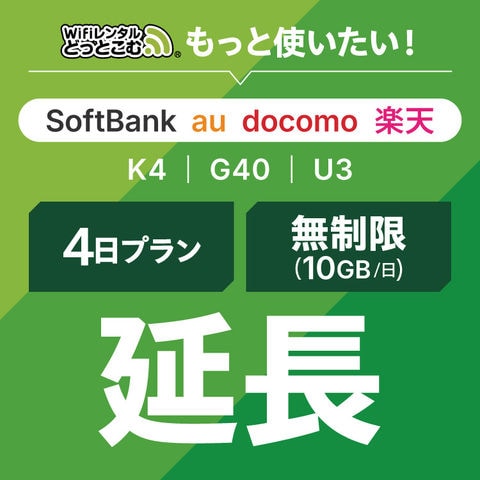 【WiFiレンタル(延長専用)】無制限(10GB/日) 4日プラン 補償なし