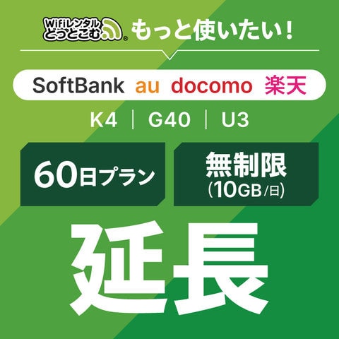 【WiFiレンタル(延長専用)】無制限(10GB/日) 60日プラン 補償なし