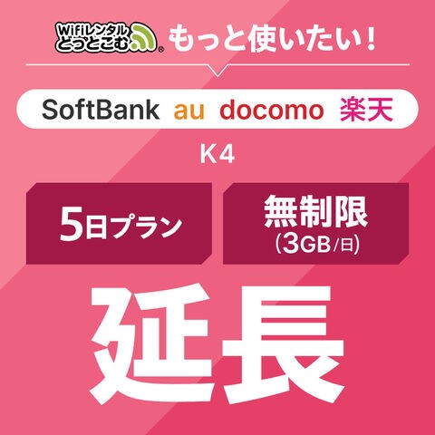 【WiFiレンタル(延長専用)】無制限(3GB/日) 5日プラン 補償なし