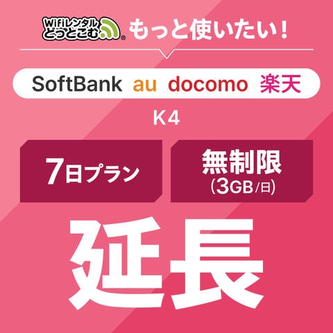 【WiFiレンタル(延長専用)】無制限(3GB/日) 7日プラン 補償なし
