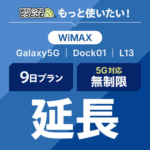 【WiFiレンタル(延長専用)】WiMAX 無制限 9日プラン 補償なし