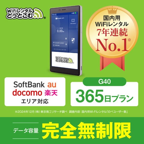 【WiFiレンタル】G40 365日プラン 完全無制限 補償付き ポケットwifi wi-fiルーター docomo Softbank au 楽天 マルチキャリア対応 入院 国内旅行 出張 テレワーク 自宅利用