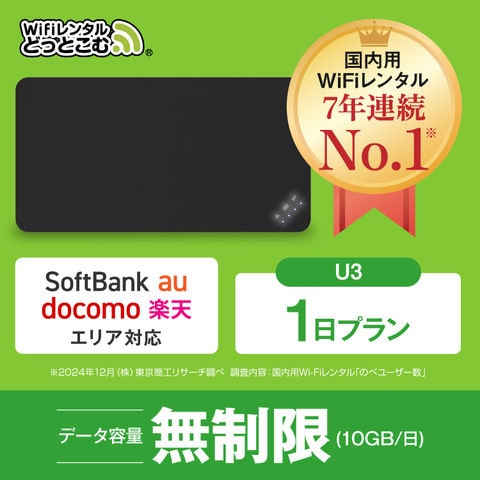 【WiFiレンタル】U3 1日プラン 無制限(10GB/日) 補償付き ポケットwifi wi-fiルーター docomo Softbank au 楽天 マルチキャリア対応 入院 国内旅行 出張 テレワーク 自宅利用