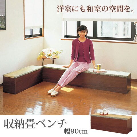 収納たたみベンチ 幅90cm 玄関収納 畳椅子 椅子 いす 木製 イス 腰掛け 和風 畳収納 畳BOX 畳ユニット 畳収納畳ボックス 和室たんす 収納タタミベンチ 収納畳ベンチ 32385 クロシオ