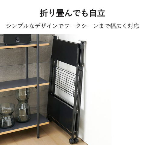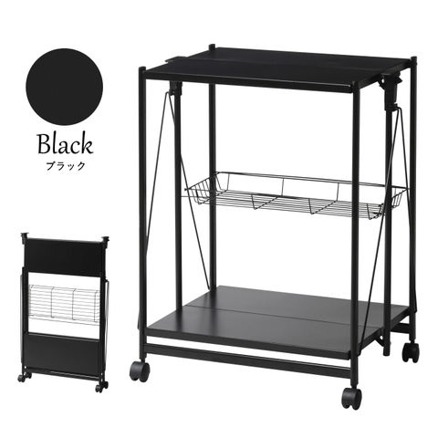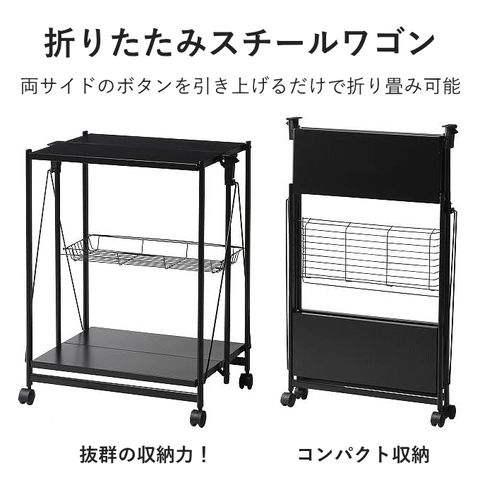 | 両サイドのボタンを操作しながら引き上げるだけでフォールディング可能なスチールワゴン。シンプルなデザインなので、キッチン周りからワークシーンまで幅広く対応します ※2022/01/11マイナーチェンジ |