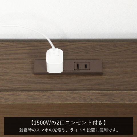 | ・空間を広くみせるロータイプ。圧迫感がなく開放的な印象です。 ・ヘッド部分の棚に、枕元で使う小物や時計が置けます。 ・1500Wの2口コンセント付きなので就寝中のスマホの充電や、ライトの設置に便利です。 ・ベッドフレームにマットレスを落とし込む構造で、マットレスのズレを防止します。 ・角を丸く加工してあるのでデザイン性もあり、安全面にも配慮した仕様です。 ・底板はフレーム内に並べるだけの簡単設置。1枚ずつ取り外せてお掃除も簡単です。 ・お洒落で高級感のある木目調です。 ・背面も化粧をしているのでどこから見ても美しく置く場所を選びません。 ・無駄のないシンプルなデザインで、圧迫感がなくワンルームにもオススメです。 ・国内製造工場で丁寧に加工された安心の日本製です。 ・落ち着きがあり、お部屋に馴染むブラウン色です。 |