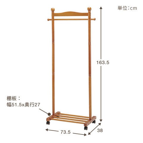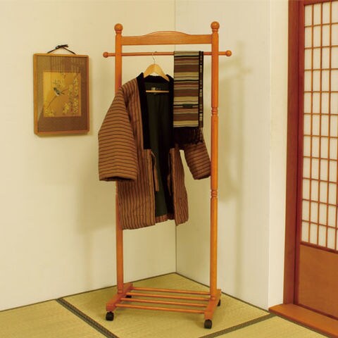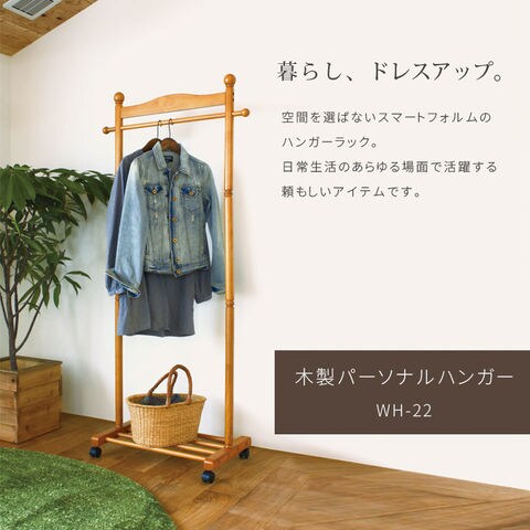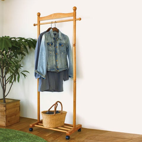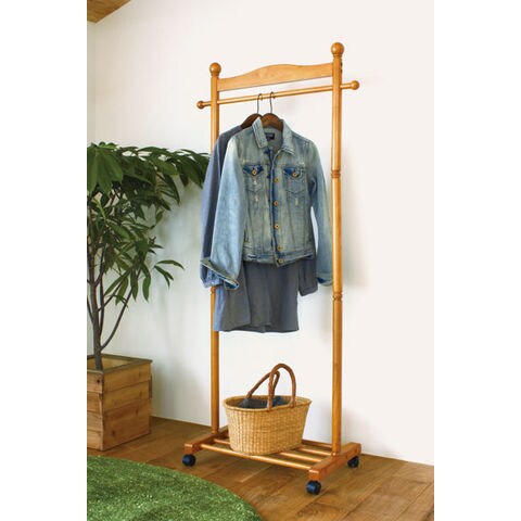 天然木使用のハンガーラック。シンプルでスマートなハンガーなので場所を選びません。キャスター付きなので移動が簡単です。