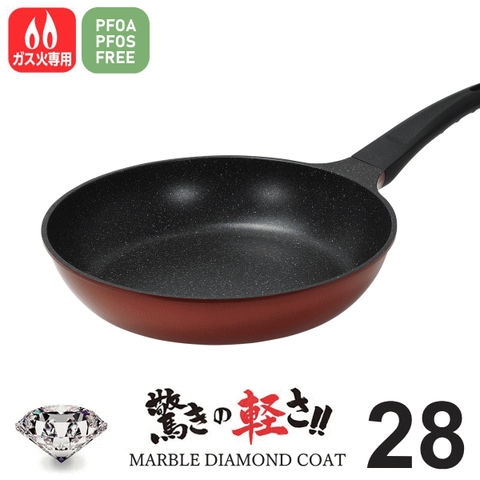 品番:P01-1-100-HC-221※品名:フライパン 28cm ガス火 炒め鍋 28センチ ダイヤモンド マーブル コーティング 大きい 大き目 中華鍋 ガス おすすめ 単品 セット でお得 おしゃれ くっつかない 取っ手 一体型 大型 大容量 焦げ付きにくい PFOA PFOS フリー EX
