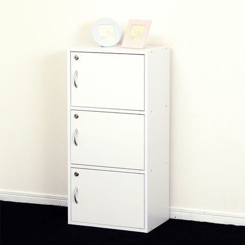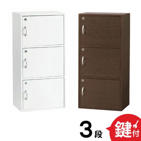 3段カラーボックス 本棚 鍵付き 扉付き 収納ボックス 幅40cm ホワイト ブラウン 扉付き キャビネット ラック 書棚 書斎 人気 3段 新生活 クロシオ 鍵付きボックス 3段 39300 39350