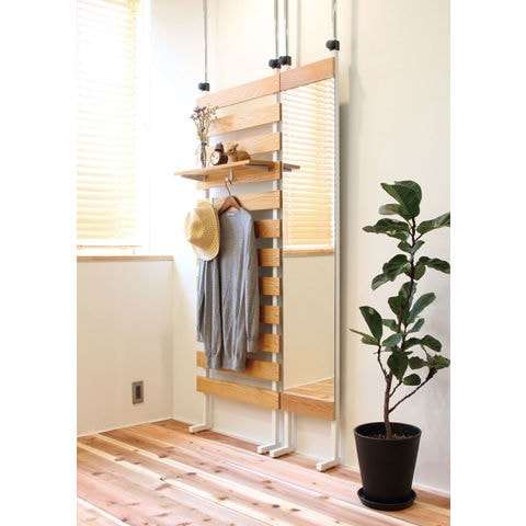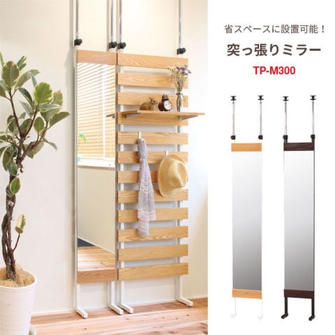 | 突っ張り式なので省スペースで設置可能です。 鏡:飛散防止加工 ※あらかじめ設置場所の天井および床面の強度をご確認下さい | |