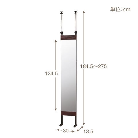 | サイズ | (約)幅30×奥行13.5×高さ184.5~275cm 鏡:サイズ:(約)幅30×高さ134.5×厚み0.3cm |