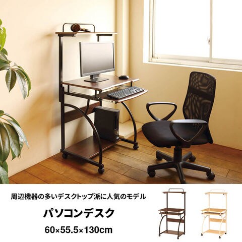 パソコンデスク PC-61T 60cm幅 キーボードスライダー 木製 キャスター付き プリンタ置き 省スペース デスク コンピューターデスク 弘益