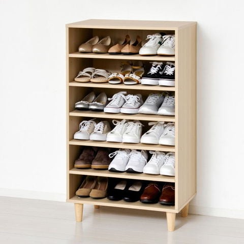 品番:K01-01-39449※品名:シューズラック 下駄箱 オープンタイプ 幅60cm スリッパラック 木目ナチュラル シューズボックス 大容量 スリム コンパクト 玄関収納 靴箱 靴棚 下足箱 省スペース ストッカー 食器棚 靴入れ シューズ入れ