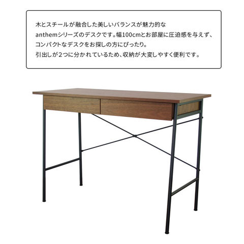 デスク 幅100cm デスク単体 パソコン 学習机 勉強机 ライティング 机 平机 木製 ウォールナット 100cm パソコンデスク ワークデスク 書斎机 学習デスク 書斎デスク anthem アンセム
