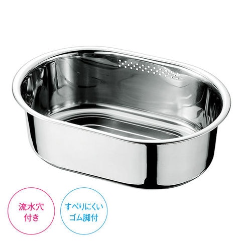 洗いおけ コンパクト オーバル型 CAO-20 洗い桶 洗い物 ステンレス ゴム脚 楕円