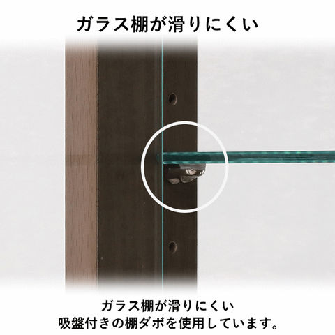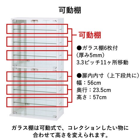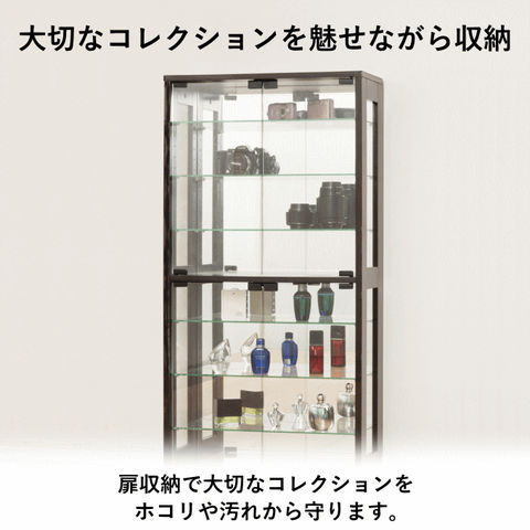 | 大切なコレクションを魅せながら収納。 ガラス棚6枚付(可動棚/3.3cmピッチ11ヶ所移動)、厚み5mm |