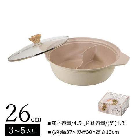 二食鍋 仕切り鍋 26cm 二色鍋 卓上鍋 両手鍋 しゃぶしゃぶ鍋 火鍋 調理鍋 万能鍋 土鍋風鍋 すきやき鍋 なべ ih対応 軽量 軽い ガラス蓋 蓋付き 卓上 HB-6587 パール金属