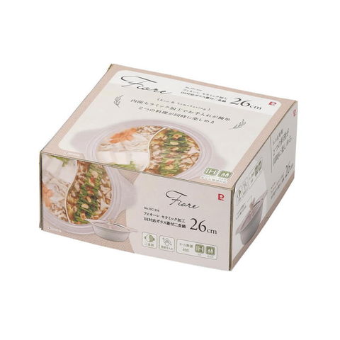 | 内面/セラミック塗膜加工、外面/焼付け塗装、材料の種類:本体/アルミニウム合金、はり底/ステンレス鋼(クロム16%)、底の厚さ/4.5cm、蓋:品名/強化ガラス製器具、強化の種類/全面物理強化、その他の材料:縁リング/ステンレス鋼、つまみ/フェノール樹脂(耐熱温度150度) |