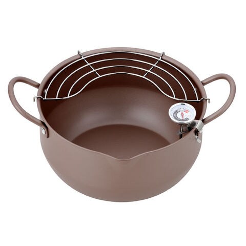 しっかりとした作りの本格揚げ鍋。便利な温度計付きです。