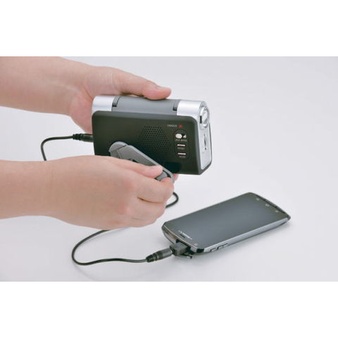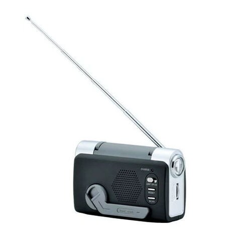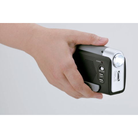 乾電池不要のダイナモ充電式。 いざというときに役立つ多機能防災ラジオ。 携帯式で、FMラジオが聞けます。 ・サイレン機能付 ・LEDライト付 ・スマートフォンの充電コネクタ付 |