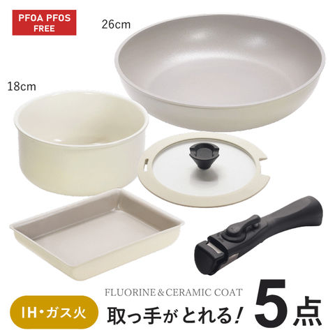 フライパン 鍋 セット 白 取っ手が取れる 蓋付き ih フライパンセット 26cm 深型 18cm ガス火 IH対応 軽量 軽い 保存容器 玉子焼き 卵焼き器 卵焼き 一人暮らし 調理器具 セット 蓋 ハンドル 取っ手の取れる