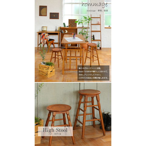 木製 ハイスツール 丸椅子 高さ 60cm カウンター チェア 北欧 アンティーク調 レトロ 飾り台 HMS-2667BR ブラウン BR ICIBA 市場 hommage オマージュ