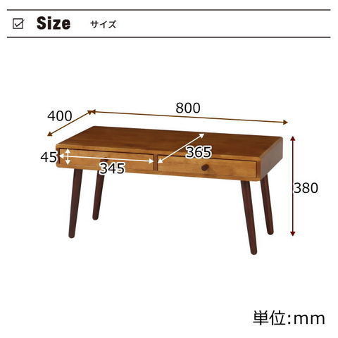センターテーブル 引き出し付 ローテーブル カジュアルテーブル KOKOA ココアテーブル 幅80cm KOKOA-T 弘益