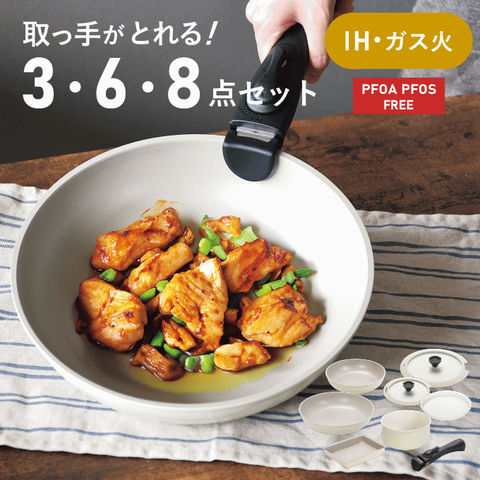 取っ手が取れるフライパン3点・6点・8点セットの詳細