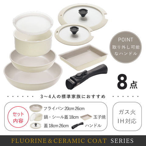 品番:P01-1-80-tortino-3P※品名:フライパン 鍋 セット 白 取っ手が取れる 蓋付き ih フライパンセット 20cm 26cm 深型 18cm ガス火 IH対応 軽量 軽い 福袋 玉子焼き 卵焼き器 卵焼き 一人暮らし 調理器具 セット 蓋 ハンドル 取っ手の取れる