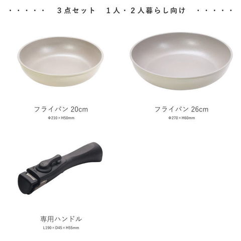 取っ手が取れるフライパン3点・6点・8点セットの解説