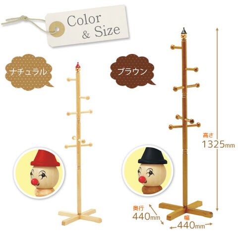 | てっぺんにピエロの顔が付いた可愛いデザインのポールハンガーです。 ナチュラルとブラウンの2色からお選びいただけます。 | |