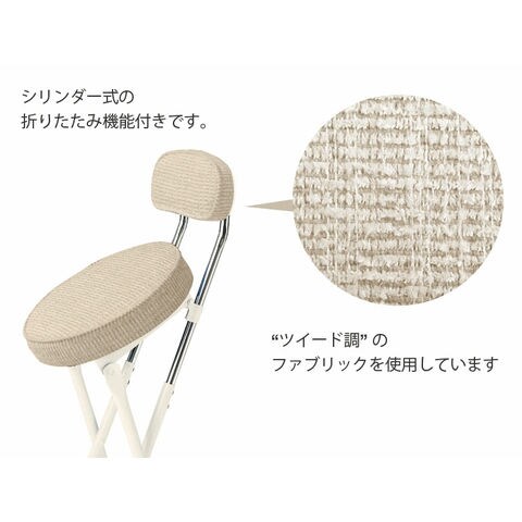 | “ツイード調”ファブリックを使用した折り畳みチェアです。 シリンダー式折り畳み機能付きです。 | |