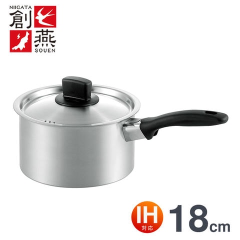 片手鍋 18cm IH対応[ガス火もOK] 創燕 日本製 SE-03 燕市 ステンレス製 蓋付