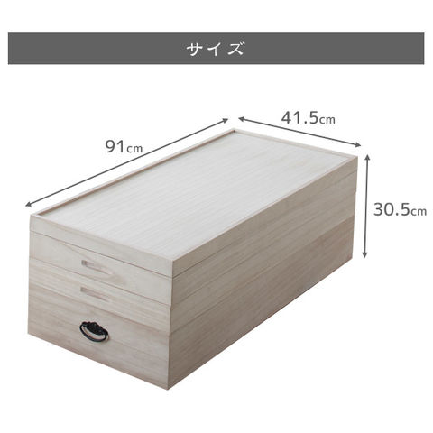 ■サイズ 幅91×奥行41.5×高さ30.5cm 内寸:幅88×奥行38.5×高さ5.5cm(上2段) 内寸:幅88×奥行38.5×高さ12cm(下1段) ■重量 約5kg ■材質 天然木(桐)、天然木化粧合板(桐合板)、木地仕上げ ■生産国 日本 ※完成品 |