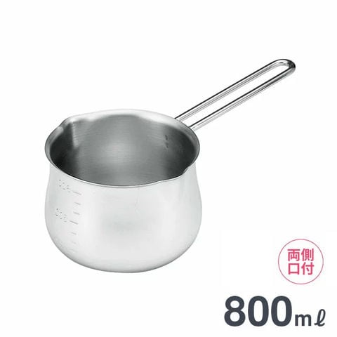 【ガス火専用】両側口付 ステンレス ミルクパン 800ml (目盛付) 日本製 H-2707