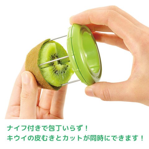 ナイフ付きで包丁いらず。キウイの皮むきとカットが同時にできます!